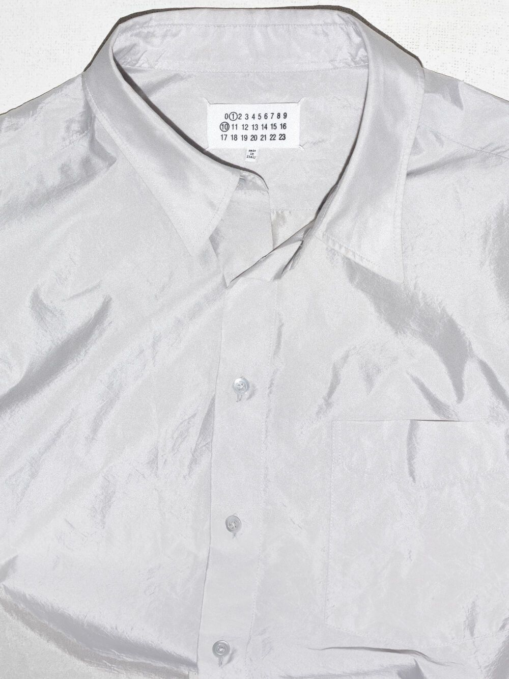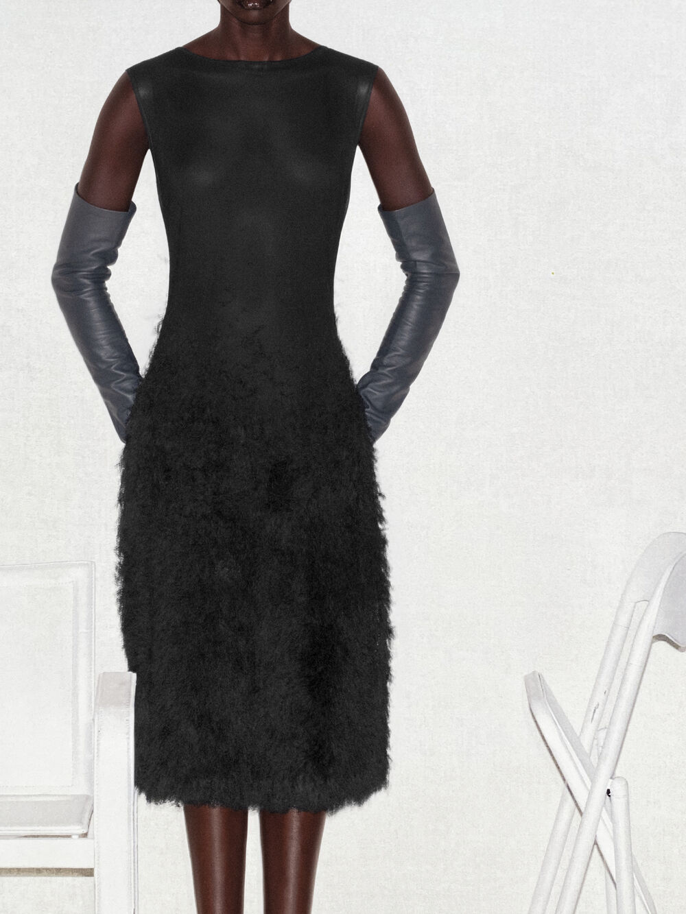 il tessuto si trasforma, creando linee decise e una luminosità che ne ridefiniscono la trama.