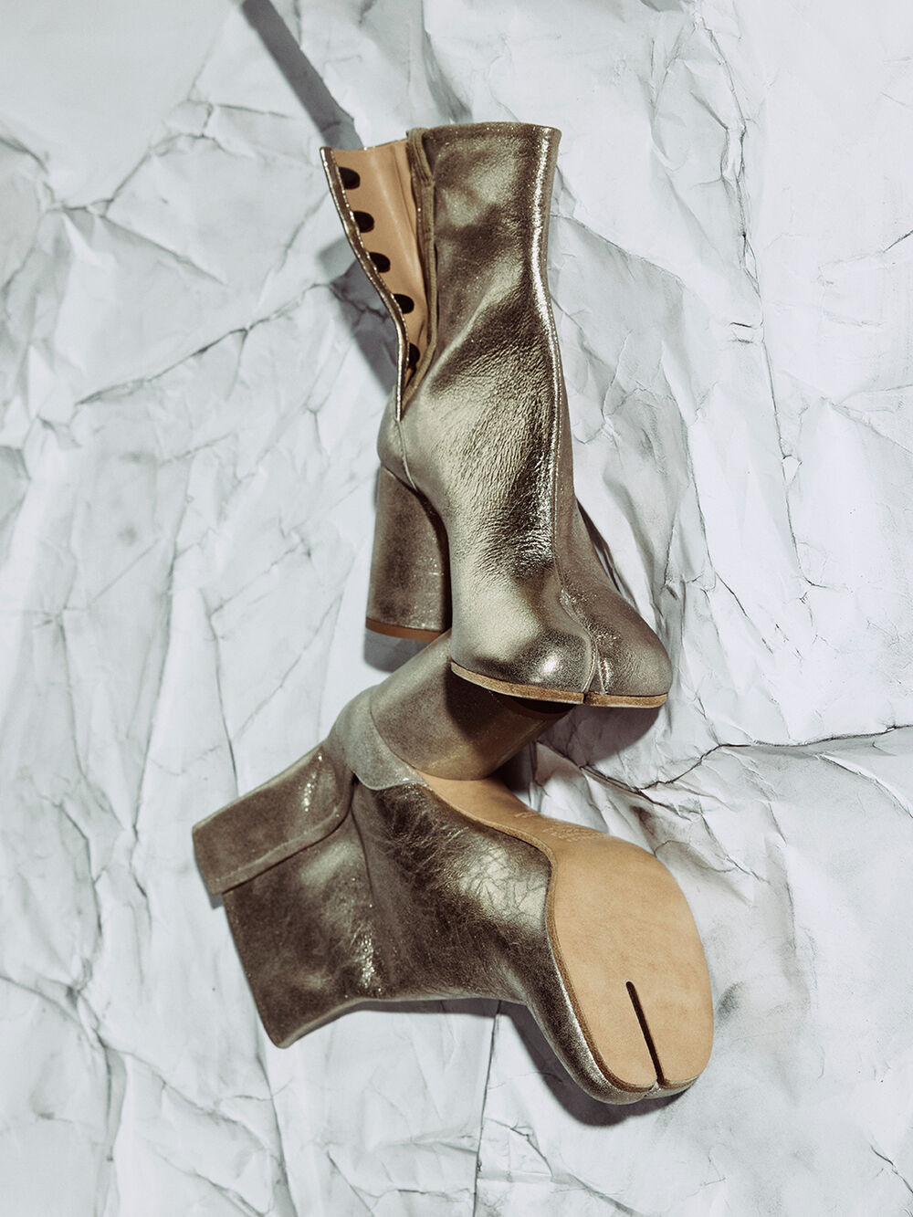 La Tabi, simbolo di Maison Margiela, è la scarpa dalla punta separata che ha debuttato per la prima volta nel 1988. Ispirata all'omonima calza tradizionale giapponese del XV secolo, è stata continuamente reinterpretata nelle varie collezioni.